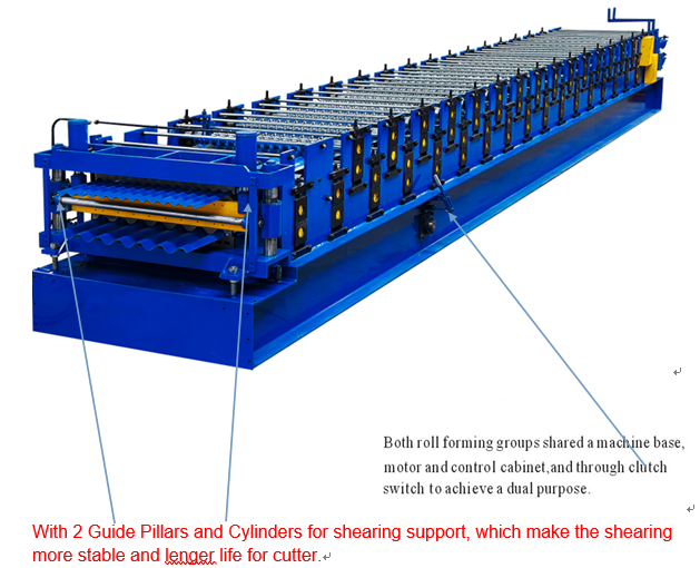Обе группы формирования рулона разделили машинную основу, шкаф двигателя и управления, а также с помощью переключателя сцепления для достижения двойной цели.